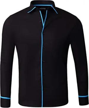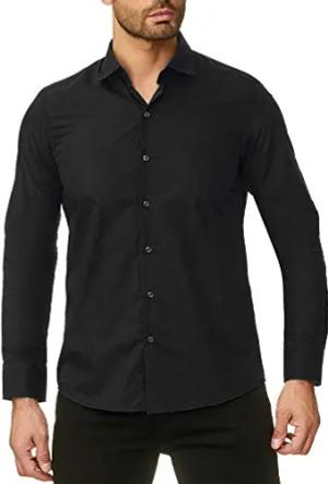 Herren Hemd Slim Fit Bügelfrei Freizeit Disco Kellner Hochzeit Männer Hemden Anzug Uni Langarm Neu RS-7002 Schwarz S
