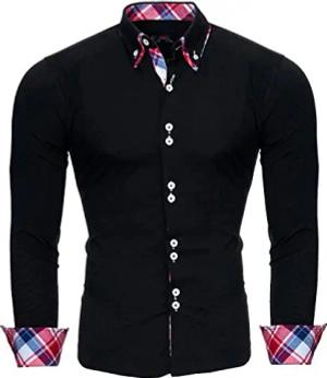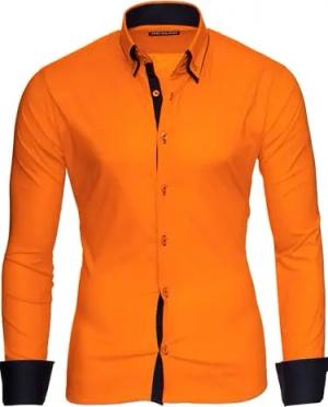 Herren Hemden bügelfreies Slim Fit Freizeithemd Männer Hemd Businesshemd zweifarbig 2 Kragen RS-7050 Orange Schwarz Gr L