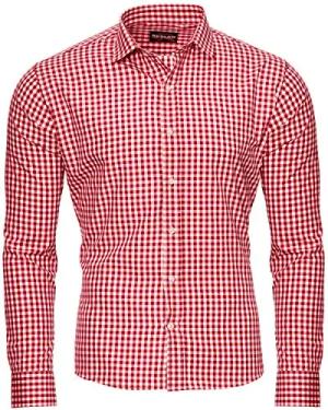 Herren Karos Wiesen Hemd Tailliert Bügelleicht Modisch für Wiesn Festlich RS-7007 Rot M