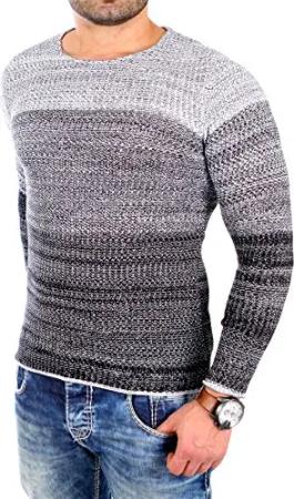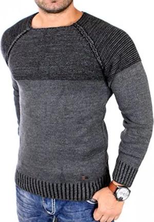 Strickpullover Herren Two Tone Rundhals Pullover Grobstrick RS-16081 (2XL, Anthrazit)