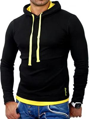 Herren Pullover Kapuzenpullover Sweatshirt Sweater Pulli Hoodie RS-1003 Schwarz-Gelb M