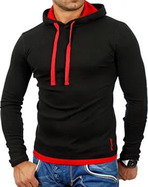 Herren Pullover Kapuzenpullover Sweatshirt Sweater Pulli Hoodie RS-1003 Schwarz-Rot L