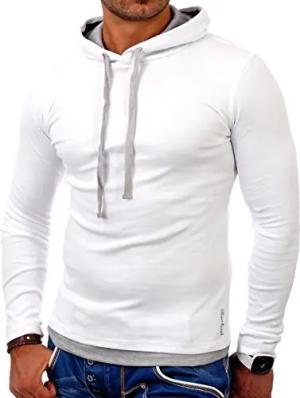Herren Pullover Kapuzenpullover Sweatshirt Sweater Pulli Hoodie RS-1003 Weiß-Grau L