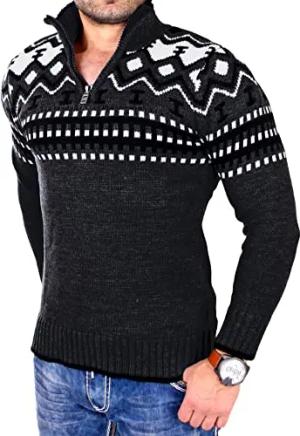 Herren Strickpullover Crewneck Zipper Norweger Pullover RS-3110 Anthrazit M