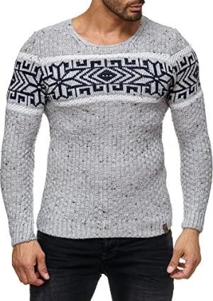 Herren Strickpullover Rundhals Norwegerpullover Muster RS-18003 Grau S
