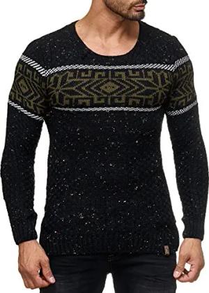 Herren Strickpullover Rundhals Norwegerpullover Muster RS-18003 Schwarz S