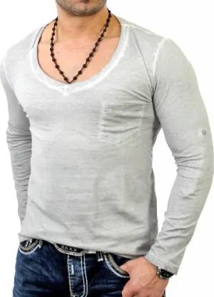 Herren V-Neck Longshirt RS-4002 Grau XL