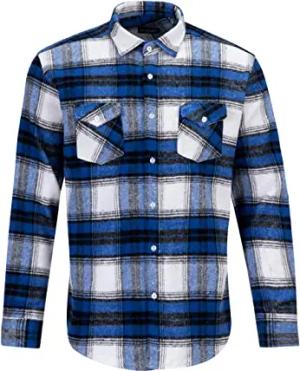 Holzfällerhemd Hemd Herren kariert Vintage Karo-Hemd Flanellhemd Männer Langarm Checked Flanell Shirt RS-7116 Blau-Schwarz M