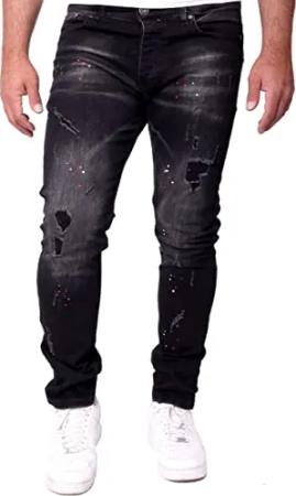 Jeans Herren Color-Splashes Stretch Denim Destroyed Jeanshose Männer-Hose Slim Fit RS-2101 Schwarz W30 / L32