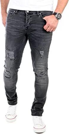 Jeans Herren Destroyed Look Slim Fit Denim Strech Jeans-Hose RS-2062 Schwarz W31 / L34