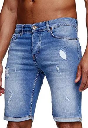 Jeans Shorts Herren Kurze Hosen Sommer l Used Look Destroyed Männer Denim Jeansshorts l Bermuda Capri Hose Regular Fit RS-2086 Mittelblau W33