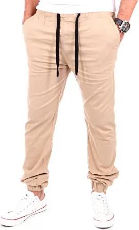Jogg-Chino Herren-Hose Männer Harem Hosen Jogger Chinos Jogging-Hose lang Chinohose RS-2055 Beige W38