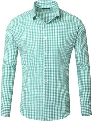 Kariertes Hemd-Herren Slim Fit Freizeithemd Trachtenhemd Karo-Hemd RS-7007 Grün M