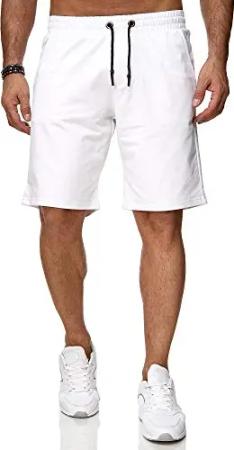 Kurze-Hose Herren Jogginghose Kurz Sweat-Shorts Basic Sport-Hose Freizeit Sweat-Hose RS-5061 (2XL, Weiß)