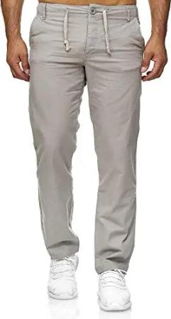 Leinenhose Männer Chino Herren-Hose lockere Sommer Stoffhose Freizeithose aus bequemer Baumwolle lang RS-3000 (M, Hellgrau)