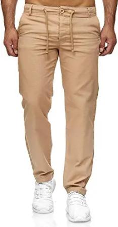 Leinenhose Männer Chino Herren-Hose lockere Sommer Stoffhose Freizeithose aus bequemer Baumwolle lang RS-3000 (S, Camel)