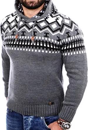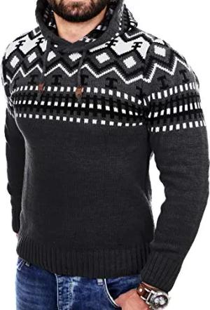 Norweger Pullover Herren Winterpullover Kapuzenpullover | Strickpullover für Männer RS-3013 (S, Dunkelgrau)