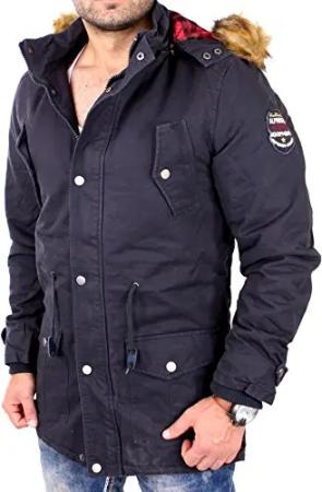 Winterjacke Herren Parka Jacke mit Kapuze und Fell RS-505 Navyblau 2XL