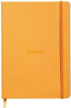 117465C Notizheft Rhodiarama mit weichem Umschlag, dot grid, 80 Blatt, 90 g elfenbeinfarbenes Papier, A5 148 x 210 mm, Lesezeichen, Innentasche,1 Stück,orange