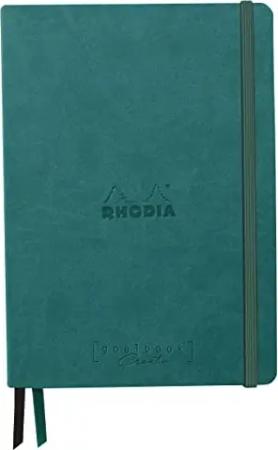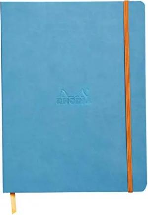 117377C - Notizheft Softcover Rhodiarama DIN A5 (14,8x21 cm), 80 Blatt, liniert Clairefontaine Papier Elfenbein 90g Lesezeichen, Gummizugverschluss, Cover aus Kunstleder Aquablau, 1 Stück