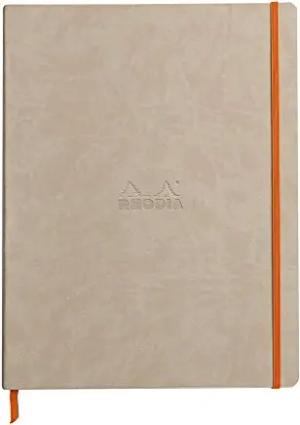 117705C Rhodiarama Notizbuch (mit weichem Deckel in Format DIN A4+, 220 x 297 mm, 80 Blatt, mikroperforiert, liniert, mit Gummizug, Lesezeichen, dehnbare Innentasche) 1 Stück, beige