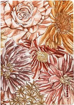 120028C - Rhodia ORANGE Botanique - Notizheft 9x14 cm liniert 32 Blatt, elfenbeinfarbiges 90g Papier, Soft Touch Einband, Blumenmotiven, 1 Stück