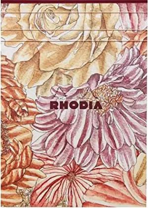 120031C - Rhodia ORANGE Botanique - Schreibblock geleimt, DIN A5 liniert, 70 Blatt, elfenbeinfarbiges Papier 90g, Blumenmotiven, 1 Stück