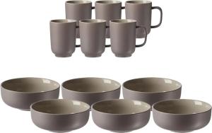 Frühstücksset 12-teilig Portofino , grau , Steinzeug/Steingut