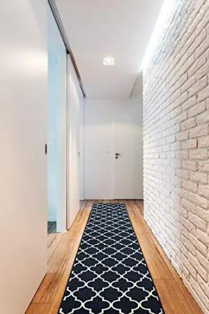 Antirutsch Teppichläufer Trellis - moderner Kurzflor für Küche, Flur & Wohnzimmer, Meterware, schwarz 120x300 cm