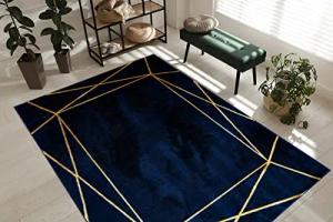 Exklusiv Emerald Teppich Glamour – Stilvoll, Geometrisch Dunkelblau/Gold 240x330 cm Modern Teppich für Wohnzimmer