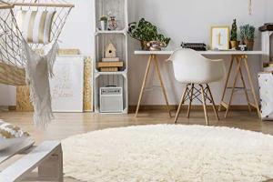 FLOKATI Griechischer Wollteppich, für das Wohnzimmer, Schlafzimmer, Kinderzimmer, Natürliche Farbe, Kreis Weiss 140 cm