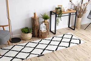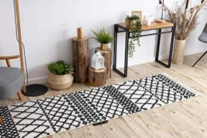 Teppich hochflor Berber Shaggy, Franse, marokkanischer Stil, für Zimmer, Wohnzimmer, Schlafzimmer, SAFI Weiß/Schwarz 80x150 cm
