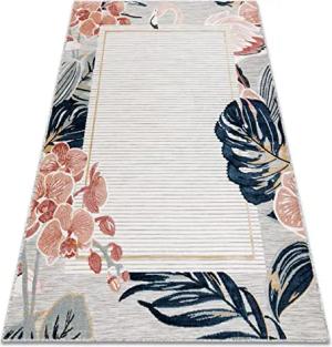 Teppich Strukturell Botanic Flamingo, Blätter, flach gewebt für Balkon, Terrasse - grau 117x170 cm