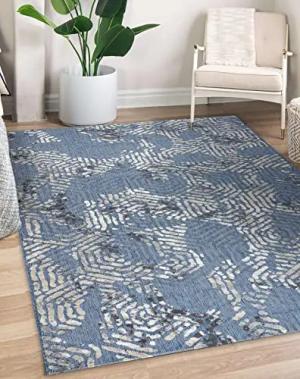 DISTIN 0833A Marineblau/blau/weiß moderner Teppich für das Zimmer, Wohnzimmer, Schlafzimmer, Boho, Vintage, Fransen 200x290 cm