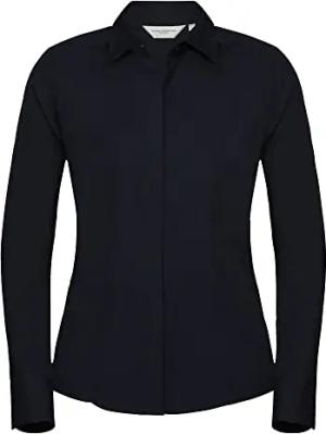Collection Klassische Baumwollmischgewebe Popeline Bluse - Langarm, black, 4XL