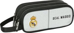 Real Madrid 1. Team 24/25 Federmäppchen mit 3 Reißverschlüssen, für Kinder, ideal für Kinder von 5 bis 14 Jahren, bequem und vielseitig, Qualität und Widerstandsfähigkeit, 21 x 7 x 8,5 cm, Weiß/Grau,