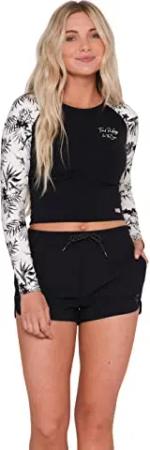 Damen Bruce Cropped-Langarmshirt, schwarz, X-Klein