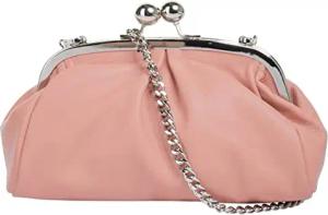 Umhängetasche Echt Leder Damen | Made in Italy | 2in1 Abendtasche | Handtasche mit Bügelverschluss rosa | 021263