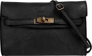 Umhängetasche Echt Leder Damen | Made in Italy | Crossbody mit Drehverschluss | elegante Messenger Bag | Schultertasche mit abnehmbarem Gurt schwarz | 021782