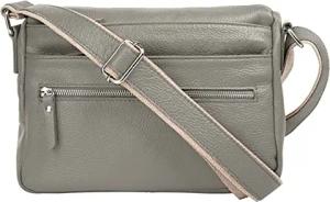 Umhängetasche Echt Leder Damen | Made in Italy, Kompakte Crossbody Tasche mit Smartphonefach & 3 Außentaschen grau | 021210