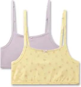 Mädchen-Bustier Gelb | Bequemes und angenehmes Bustier aus Baumwoll-Mix Unterwäsche mit Schleifchen und Palmen-Allover Inhalt 2er Set