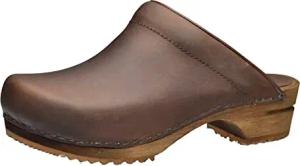 | Sonja Offener Clog, geöltes Leder | Original handgemacht für Damen | Anatomisch geformtes Fußbett mit weichem Schaum | Braun | 37 EU