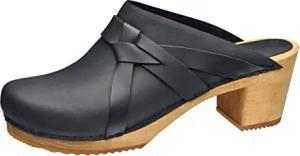 Manuella Clog | Original handgemacht | Lederclog mit Holzsohle für Damen, Größe: 39 EU, Schwarz