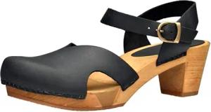 Ursana offener Clogs | Original handgemacht | Leder-Holzclogs für Damen | Schwarz | EU 35
