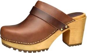 Urban Offener Clog | Original handgemacht | Leder-Holzclogs für Damen | Nachhaltige Materialen | Cognacbraun | 42 EU