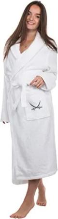 Damen & Herren Bademantel mit Schalkragen und gestickten Logo´s 100% Baumwolle Weiß XL/XXL