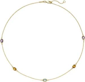 0,8mm Collier Ankerkette Blautopas Amethysten Citrinen 585 Gold Gelbgold 42-45cm