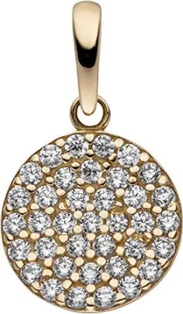Anhänger aus 333 Gold Gelbgold mit 37 Zirkonia flach rund Ø8,5mm Halsschmuck