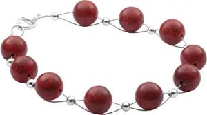 Armband aus Koralle Schaumkoralle Kugel & 925 Silber Korallenarmband rot dunkelrot glatt Damen