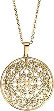 Collier Kette mit Anhänger antik Ornament rund Edelstahl in Goldfarbe 46cm